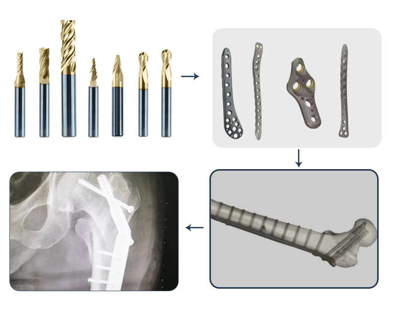 在医疗接骨板行业,发展非常快,之前大多是用不锈钢,但随着技术和医疗要求的不断发展,钛质接骨板越来越成为主流,那加工钛合金接骨板的铣刀,也开始顺应发展。